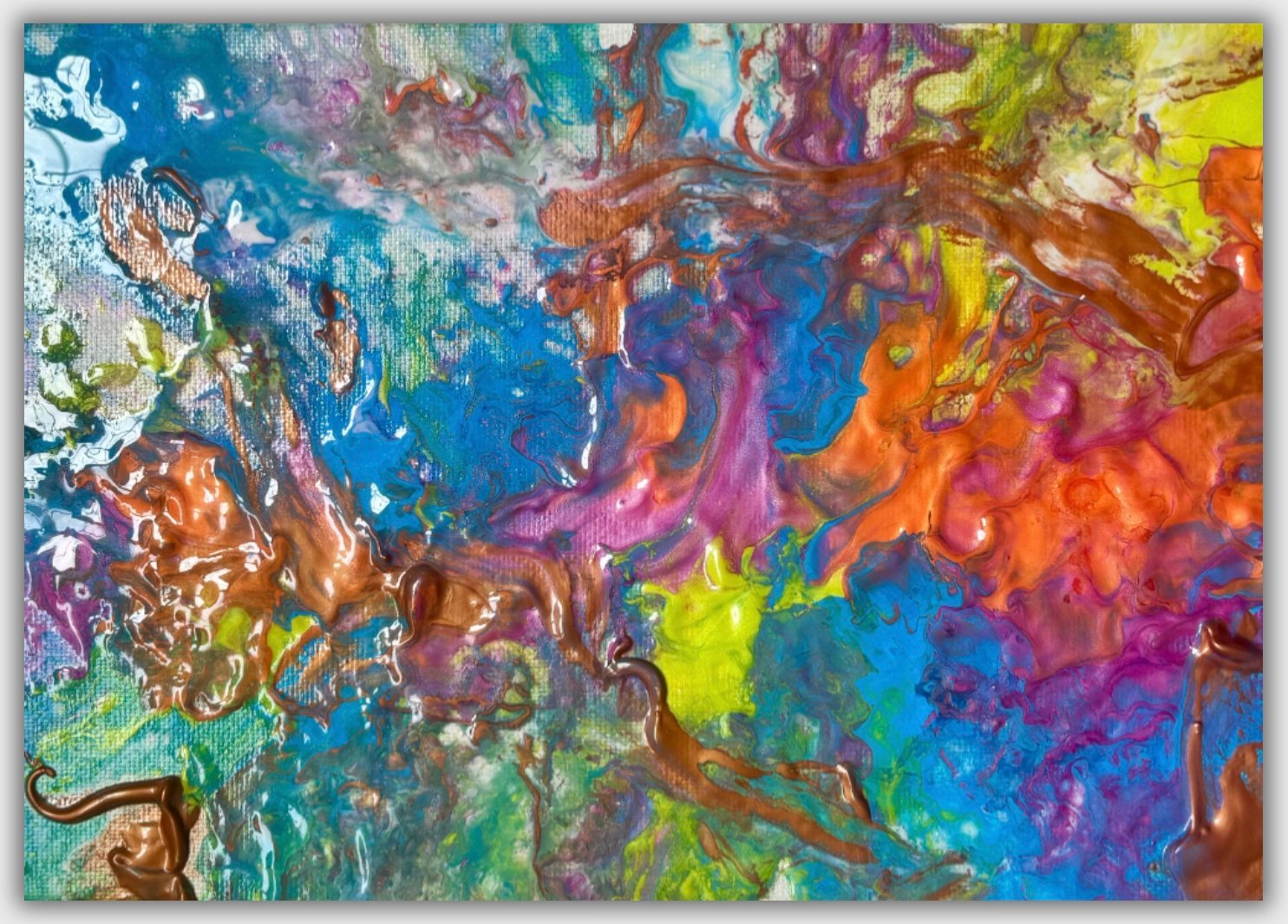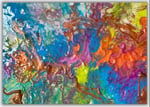 A vivid journey into liquid color. Technicolor Daydream blends shimmering metallic copper with deep blues, purples, and neon accents. Its glossy, marbled textureand organic, flowing patterns create an ethereal landscape that feels both luxurious and full of life.